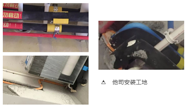 匯川在每戶巡檢的過程中也發(fā)現(xiàn)了發(fā)現(xiàn)了很多問題:保溫棉拐彎處緊繃而自然崩開、 壓力表不正常的降到0Pa、卡扣松落、內(nèi)機(jī)不水平、保溫鏈接處斷開、開關(guān)深度不夠等等。雖然這些問題不普遍,只存在于極個(gè)別工地,但只要存在,就有要巡檢找出的必要性!因?yàn)橹醒肟照{(diào)的管路和機(jī)器都是要封閉在吊頂之內(nèi)的,必須防人為、防破損、防遺漏!
